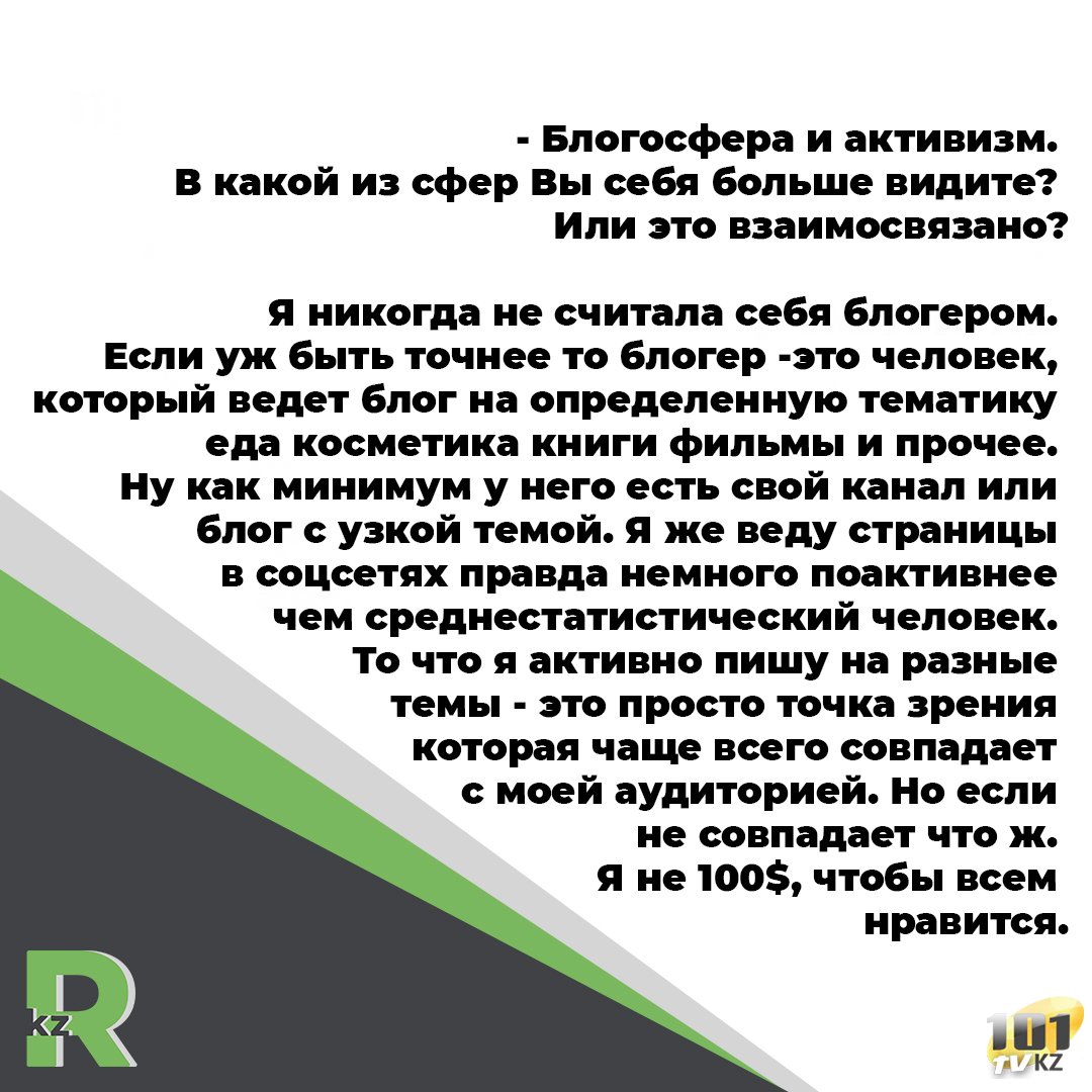 У кого больше влияния у блогеров или СМИ? Можно я отвечу словами Данилы Багрова. Сила в правде. Неважно СМИ это или блогер если вы говорите правильные вещи, актуальные, не пытаетесь манипулировать мнением и реально доносите правду как она есть у того и влияние. Мне часто пишут Аида помоги расскажи о проблеме. Чиновник Г ворует вагонами, на работе начальник Х пристает к сотрудницам, стройкомпания Б кинула дольщиков Я отвечаю чем помочь? Просят, чтобы я написала пост и подняла шумиху. Тогда я говорю что никто кроме вас лучше не скажет о проблеме. И прошу людеф сначала самим для начала что-то сделать. Знаете в 99% люди отказываются. Они во-первых боятся испортить отношения с начальством, боятся уголовной ответственности, или им тупо лень. Но официально они объясняют что у меня большая аудитория и у меня лучше получается писать тексты. Я не против помогать людям но я против паразитизма. Поэтому если человеку очень надо он сделает первый шаг. Ну а дальше я подумаю, как ему помочь